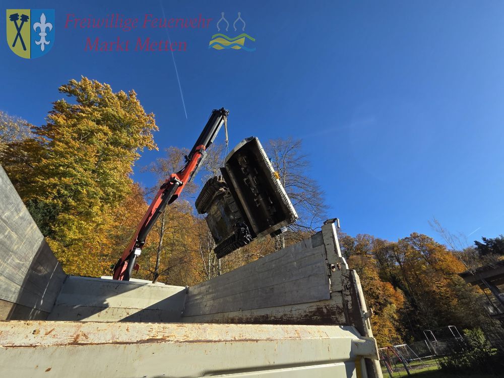 Heute wurden wir zu einem nicht alltäglichen Einsatz gerufen. Bei Mäharbeiten ist ein Mähroboter in ein fließendes Gewässer gefallen, wobei Öl ausgetreten ist. In Absprache mit den Fachbehörden haben wir mehrere Ölsperren in den Bach gezogen und das Öl mit Vlies aufgesaugt.