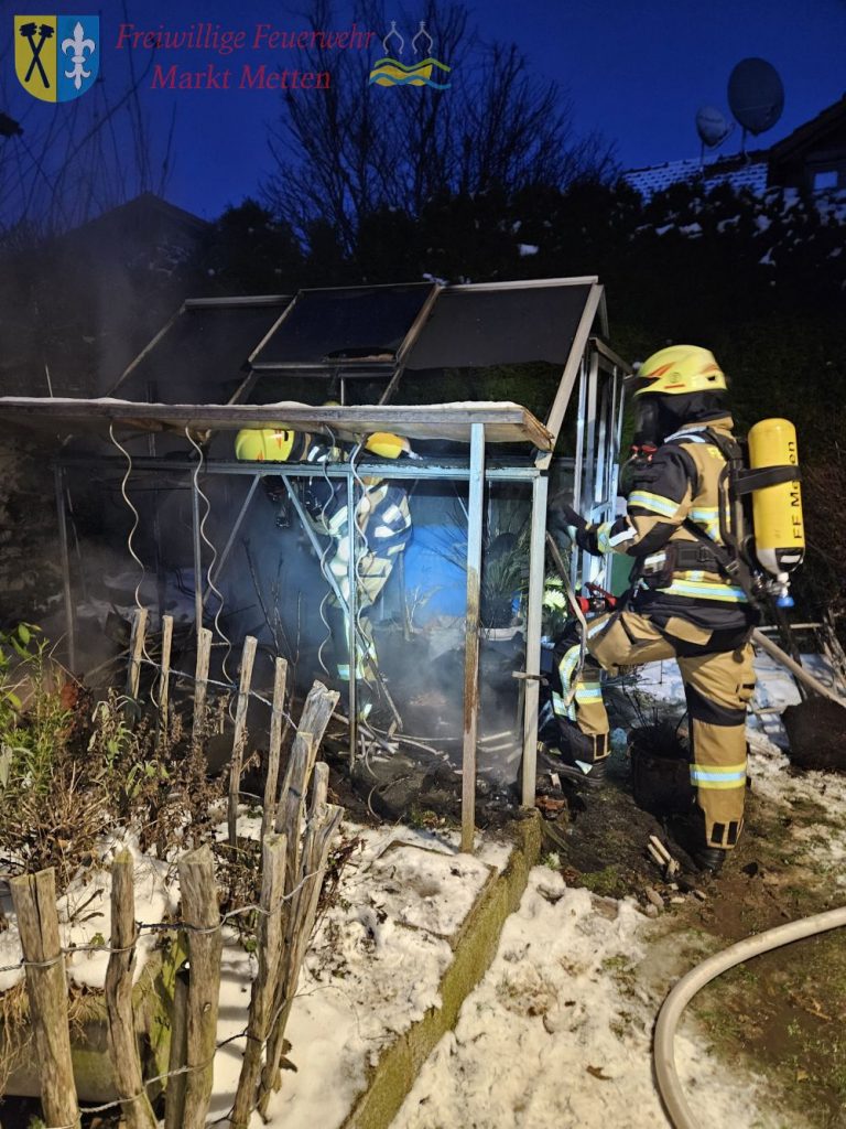 Heute wurden wir zu unserem ersten Einsatz im Jahr 2026 alarmiert. Ein Anwohner hat am Nachbargrundstück schwarzen Rauch wahrgenommen und den Notruf gewählt. Bei unserer Ankunft stand ein Gewächshaus im Garten in Vollbrand, dieses wurde unter schwerem Atemschutz abgelöscht. Nach Kontrolle mit der Wärmebildkamera konnten wir wieder einrücken.