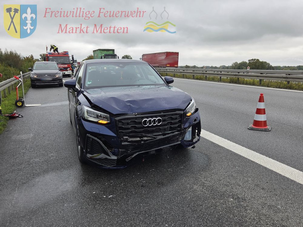 Gerade als wird zum brennenden LKW ausgerückt sind, kam von der Leitstelle die Meldung das es in der Autobahnauffahrt Metten zu einem Verkehrsunfall mit mehreren Fahrzeugen gekommen sein soll. Unser Tanklöschfahrzeug mit VSA übernahm die Absicherung der Einsatzstelle und die Betreuung der verunfallten Personen bis zum Eintreffen des Rettungsdienstes. Die nachgeforderte Feuerwehr Neuhausen übernahm die Fahrbahnreinigung.