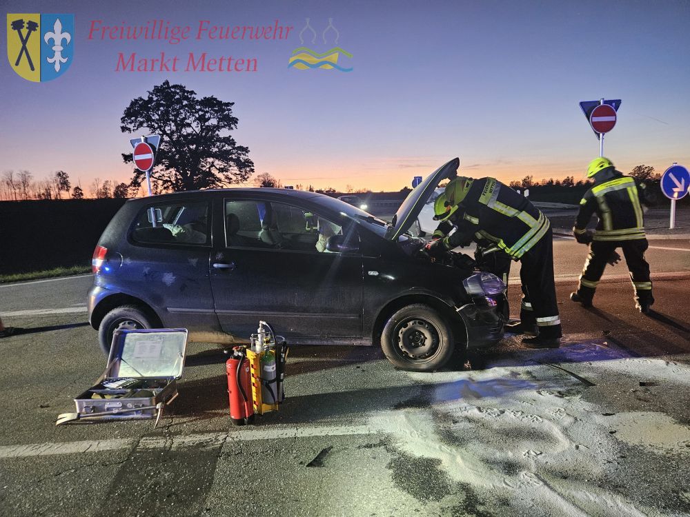 Zum zweiten Einsatz des Tages wurden wir auf die ST 2125 zu einem Unfall bei der Autobahnauffahrt Metten alarmiert. Wir haben an der Einsatzstelle den Brandschutz sichergestellt, auslaufende Betriebsstoffe gebunden, die Fahrbahn gereinigt und die Verkehrsabsicherung übernommen. Ebenfalls wurde die Feuerwehr Neuhausen zur Verkehrsabsicherung nachalarmiert.